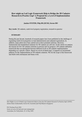 Stoter J, Biljecki F, Ho S (2020): How might an LoD Logic Framework Help to Bridge the 3D Cadastre Research-to-Practice Gap? A Proposal for a Level of Implementation Framework. FIG Working Week 2020. PDF