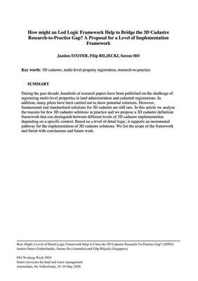 Stoter J, Biljecki F, Ho S (2020): How might an LoD Logic Framework Help to Bridge the 3D Cadastre Research-to-Practice Gap? A Proposal for a Level of Implementation Framework. FIG Working Week 2020. PDF
