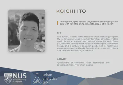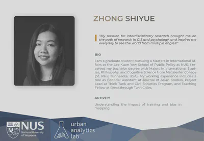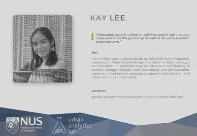 I am a third-year undergraduate at Yale-NUS from Singapore, majoring in Urban Studies alongside a minor in Anthropology. I am interested in understanding our cities and contributing to positive change through both data-based and ethnographic research. I am keen on pursuing a career in city research and urban planning in the future.