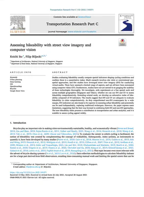 Ito K, Biljecki F (2021): Assessing bikeability with street view imagery and computer vision. Transportation Research Part C: Emerging Technologies 132: 103371. 10.1016/j.trc.2021.103371 PDF