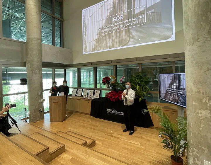 Asst Prof Filip Biljecki was awarded the Teaching Excellence Award by the NUS School of Design and Environment. The award is presented in recognition of excellence, dedication, and commitment to the education of students at NUS in AY2020/2021, based on the three graduate modules in urban data science in which our Lab is involved and other activities such as supervision of master theses. It was conferred on him by Prof Lam Khee Poh, Dean of SDE.