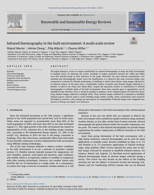 Martin M, Chong A, Biljecki F, Miller C (2022): Infrared thermography in the built environment: A multi-scale review. Renewable and Sustainable Energy Reviews 165: 112540. 10.1016/j.rser.2022.112540 PDF