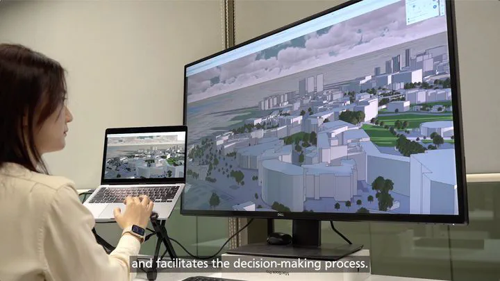 PhD researcher Binyu Lei showing a 3D city model.We are excited to share a video about our research group produced by our NUS College of Design and Engineering!