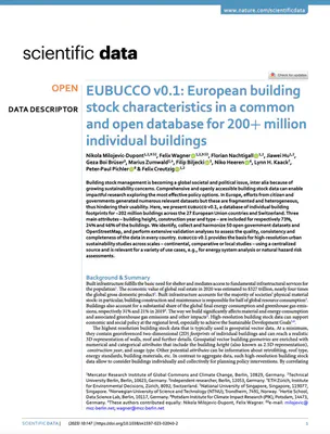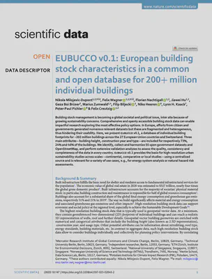 Milojevic-Dupont N, Wagner F, Nachtigall F, Hu J, Brüser GB, Zumwald M, Biljecki F, Heeren N, Kaack LH, Pichler PP, Creutzig F (2023): EUBUCCO v0.1: European building stock characteristics in a common and open database for 200+ million individual buildings. Scientific Data 10: 147. 10.1038/s41597-023-02040-2 PDF