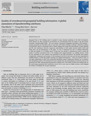 Biljecki F, Chow YS, Lee K (2023): Quality of crowdsourced geospatial building information: A global assessment of OpenStreetMap attributes. Building and Environment 237: 110295. 10.1016/j.buildenv.2023.110295 PDF