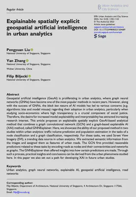 Liu P, Zhang Y, Biljecki F (2024): Explainable spatially explicit geospatial artificial intelligence in urban analytics. Environment and Planning B: Urban Analytics and City Science, 51(5): 1104–1123. 10.1177/23998083231204689 PDF