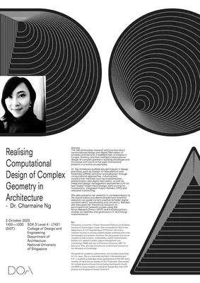Charmaine delivered the guest lecture Realising Computational Design of Complex Geometry in Architecture (poster and abstract below).