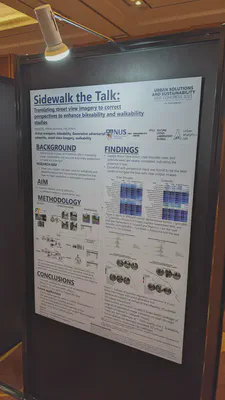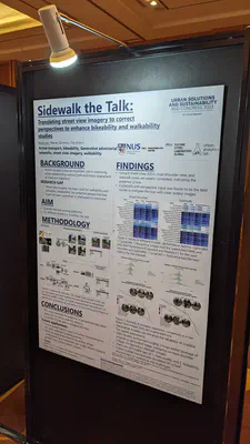 For example, Yujun Hou, Koichi Ito, and Winston Yap have taken part in the Urban Solutions & Sustainability R&D Congress 2023: Science of Cities Symposium. Yujun has also presented at the Data Quality Domain Working Group member meeting of the Open Geospatial Consortium (her paper on establishing a framework for assessing data quality of street-level imagery), while Winston – besides giving a talk at the same conference (on his project Urbanity) – gave further ones at the Planning Institute of Australia and the SMU College of Integrative Studies.