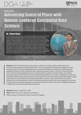 Human sense of place refers to how we perceive, experience, and interact with a particular location and environment. The emergence of Geospatial Data Science – the use of geographic knowledge and AI approaches to extract meaningful insights from large-scale geographic data – has achieved remarkable success not only in modeling physical geographic phenomena but also in advancing human subjective experiences at place. In this talk, Dr. Kang will present a series of works that utilize geospatial data science to understand human experience and sense of place. First, utilizing eye-tracking systems, his work delved into human subjective safety perceptions (e.g., whether a neighborhood is perceived as a safe place) to identify physical objects that attract human attention from street view images. Second, utilizing large language models (LLMs), his work proposed a Soundscape-to-Image Diffusion model to visualize and translate human auditory perceptions into visual representations of place. His work demonstrated how human multi-sensory experiences can be linked to comprehensively understand human sense of place using Generative AI. Finally, he will share his multifaceted experiences in GISphere that aim to promote global GIScience education.