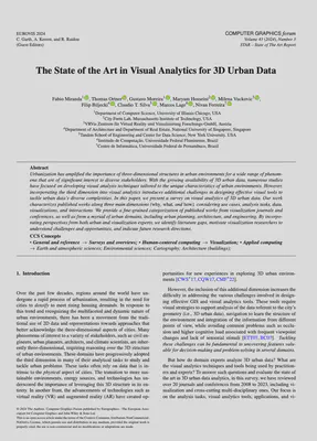 Miranda F, Ortner T, Moreira G, Hosseini M, Vuckovic M, Biljecki F, Silva CT, Lage M, Ferreira N (2024): The State of the Art in Visual Analytics for 3D Urban Data. Computer Graphics Forum 43(3): e15112. 10.1111/cgf.15112 PDF