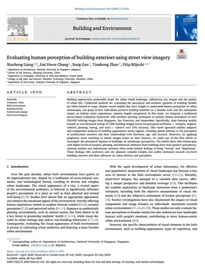 Liang X, Chang JH, Gao S, Zhao T, Biljecki F (2024): Evaluating human perception of building exteriors using street view imagery. Building and Environment, 263: 111875. 10.1016/j.buildenv.2024.111875 PDF