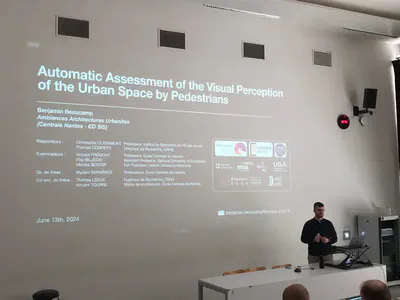 Benjamin Beaucamp defended his PhD thesis Automatic assessment of the visual perception of the urban space by pedestrians at Centrale Nantes. He conducted this research in the Urban Architecture Nantes Research Centre (CRENAU), part of the Architectural and Urban Ambiances Laboratory (AAU).