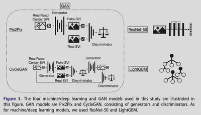 Street view imagery (SVI), an emerging geospatial dataset, is useful for evaluating active transportation infrastructure, but it faces potential biases from its vehicle-based capture method, diverging from pedestrians’ and cyclists’ perspectives. Existing literature lacks both an examination of these biases and a solution. This study identifies and quantifies these biases by comparing conventional SVI with views from the road shoulder/sidewalk. To mitigate such perspective biases, we introduce a novel framework with generative adversarial network (GAN)-based image generation models (Pix2Pix and CycleGAN), an image regression model (ResNet-50), and a tabular model (LightGBM). Experiments assessed model effectiveness in translating car-centric views to those from pedestrian and cyclist perspectives. Results show significant differences in semantic indicators (e.g. green view index) between road center and road shoulder/sidewalk SVI, with low Pearson’s correlation coefficients r (0.35–0.55 for road shoulders and 0.45–0.47 for sidewalks) indicating bias. The framework succeeded in creating realistic images and aligning pixel ratios between perspectives, achieving strong correlation coefficients (0.81 for road shoulders and 0.83 for sidewalks), thus reducing bias. This work contributes by providing a scalable and model-agnostic approach to produce accurate SVIs for urban planning and sustainability, setting a foundation for improving bikeability and walkability assessments and promoting active transportation.