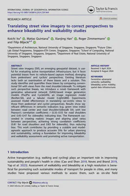 Ito K, Quintana M, Han X, Zimmermann R, Biljecki F (2024): Translating street view imagery to correct perspectives to enhance bikeability and walkability studies. International Journal of Geographical Information Science, 38(12): 2514-2544. 10.1080/13658816.2024.2391969 PDF
