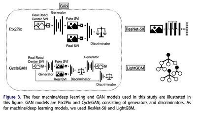 Street view imagery (SVI), an emerging geospatial dataset, is useful for evaluating active transportation infrastructure, but it faces potential biases from its vehicle-based capture method, diverging from pedestrians’ and cyclists’ perspectives. Existing literature lacks both an examination of these biases and a solution. This study identifies and quantifies these biases by comparing conventional SVI with views from the road shoulder/sidewalk. To mitigate such perspective biases, we introduce a novel framework with generative adversarial network (GAN)-based image generation models (Pix2Pix and CycleGAN), an image regression model (ResNet-50), and a tabular model (LightGBM). Experiments assessed model effectiveness in translating car-centric views to those from pedestrian and cyclist perspectives. Results show significant differences in semantic indicators (e.g. green view index) between road center and road shoulder/sidewalk SVI, with low Pearson’s correlation coefficients r (0.35–0.55 for road shoulders and 0.45–0.47 for sidewalks) indicating bias. The framework succeeded in creating realistic images and aligning pixel ratios between perspectives, achieving strong correlation coefficients (0.81 for road shoulders and 0.83 for sidewalks), thus reducing bias. This work contributes by providing a scalable and model-agnostic approach to produce accurate SVIs for urban planning and sustainability, setting a foundation for improving bikeability and walkability assessments and promoting active transportation.
