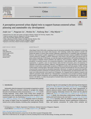 Luo J, Liu P, Xu W, Zhao T, Biljecki F (2025): A perception-powered urban digital twin to support human-centered urban planning and sustainable city development. Cities, 156: 105473. 10.1016/j.cities.2024.105473 PDF