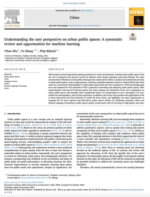 Zhu Y, Zhang Y, Biljecki F (2025): Understanding the user perspective on urban public spaces: A systematic review and opportunities for machine learning. Cities, 156: 105535. 10.1016/j.cities.2024.105535 PDF