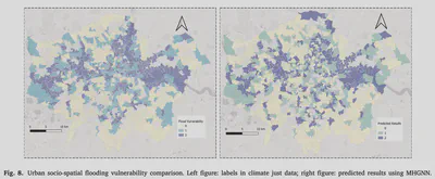 - A dual-GNN to model multifaceted spatial patterns for studying urban climate justice.