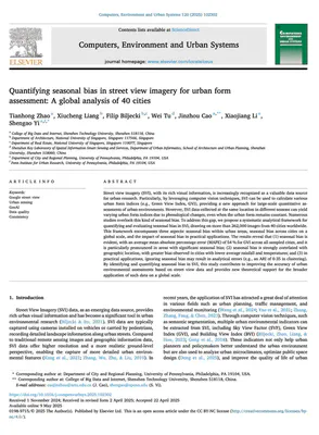Zhao T, Liang X, Biljecki F, Tu W, Cao J, Li X, Yi S (2025): Quantifying seasonal bias in street view imagery for urban form assessment: A global analysis of 40 cities. Computers, Environment and Urban Systems 120: 102302. 10.1016/j.compenvurbsys.2025.102302 PDF
