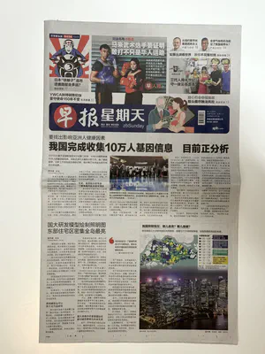 We are on the front page of Lianhe Zaobao, one of the largest newspapers in Singapore.