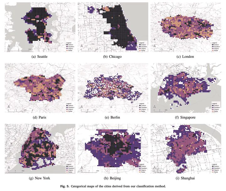 There is a prevailing trend to study urban morphology quantitatively thanks to the growing accessibility to various forms of spatial big data, increasing computing power, and use cases benefiting from such information. The methods developed up to now measure urban morphology with numerical indices describing density, proportion, and mixture, but they do not directly represent morphological features from the human’s visual and intuitive perspective. We take the first step to bridge the gap by proposing a deep learning-based technique to automatically classify road networks into four classes on a visual basis. The method is implemented by generating an image of the street network (Colored Road Hierarchy Diagram), which we introduce in this paper, and classifying it using a deep convolutional neural network (ResNet-34). The model achieves an overall classification accuracy of 0.875. Nine cities around the world are selected as the study areas with their road networks acquired from OpenStreetMap. Latent subgroups among the cities are uncovered through clustering on the percentage of each road network category. In the subsequent part of the paper, we focus on the usability of such classification: we apply our method in a case study of urban vitality prediction. An advanced tree-based regression model (LightGBM) is for the first time designated to establish the relationship between morphological indices and vitality indicators. The effect of road network classification is found to be small but positively associated with urban vitality. This work expands the toolkit of quantitative urban morphology study with new techniques, supporting further studies in the future.