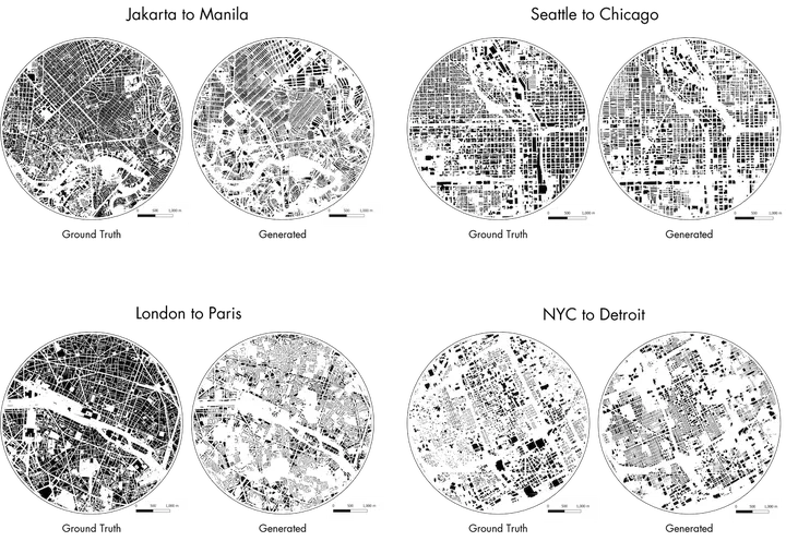 Generative Adversarial Network (GAN) is widely used in many generative problems, including in spatial information sciences and urban systems. The data generated by GANs can achieve high quality to augment downstream training or to complete missing entries in a dataset. GANs can also be used to learn the relationship between two datasets and translate one into another, e.g. road network data into building footprint data. However, such approach has not been developed in the geospatial and urban data science context, its usability remains unknown, and the methods are not fully developed. We develop a new Geographical Data Translation algorithm based on GAN to generate high-resolution vector building data solely from street networks, which may be used to predict the urban morphology in absence of building data, also enabling studies in unmapped or undermapped urban geographies, among other advantages. Experiments on 16 cities around the world demonstrate that the generated datasets are largely successful in resembling ground truth morphologies. Thus, the approach may be used in lieu of traditional data for tasks that are often hampered by lack of data, e.g. urban form studies, simulation of urban morphologies in new contexts, and spatial data quality assessment. Our work proposes a novel rapid approach to generate building footprints in replacement of procedural methods and it introduces a new intrinsic method for large-scale spatial data quality control, which we test on OpenStreetMap by predicting missing buildings and suggesting the completeness of data without the usually required authoritative counterparts. The code, sample model, and dataset are available openly.