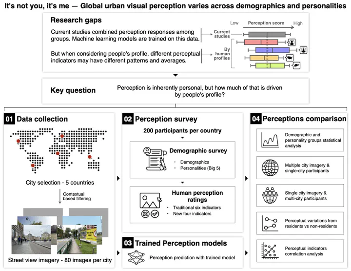 Understanding people’s preferences is crucial for urban planning, yet current approaches often combine responses from multi-cultural populations, obscuring demographic differences and risking amplifying biases. We conducted a large-scale urban visual perception survey of streetscapes worldwide using street view imagery, examining how demographics—including gender, age, income, education, race and ethnicity, and personality traits—shape perceptions among 1,000 participants with balanced demographics from five countries and 45 nationalities. This dataset, Street Perception Evaluation Considering Socioeconomics, reveals demographic- and personality-based differences across six traditional indicators—safe, lively, wealthy, beautiful, boring, depressing—and four new ones: live nearby, walk, cycle, green. Location-based sentiments further shape these preferences. Machine-learning models trained on existing global datasets tend to overestimate positive indicators and underestimate negative ones compared to human responses, underscoring the need for local context. Our study aspires to rectify the myopic treatment of street perception, which rarely considers demographics or personality traits.