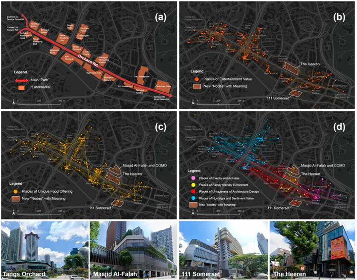 Kevin Lynch’s concept of imageability describes how effectively an environment evokes a mental image in an observer’s mind, which consists of three components—“identity, structure, and meaning”—with the first two being the main components to build Lynch’s cognitive map. Although imageability has significantly influenced urban design and planning, and inspired numerous subsequent research, the “meaning” component has not been clearly studied. The rise of new urban data, particularly the booming availability of reviews of urban spaces on platforms such as TripAdvisor and Google, offers a valuable opportunity to incorporate the meaning into the imageability study. By adapting several open-source algorithms, this research efficiently extracts both objective (e.g. location, number of reviews) and subjective (e.g. ratings, review text) information from the online platform, proposing a novel approach to studying the meaning component through a fine-tuned BERT model. These data and methods enable this research to capture and categorize the meaning component for describing the image of the city, using Singapore as a case study. The results show that: (1) Lynch’s cognitive mapping approach could potentially be enhanced by incorporating the meaning into the study of imageability, it could amplify the existing nodes or landmarks, and create new “nodes”. (2) The proposed “meaning patch” could add new layers to structure of the city image by representing the shared meanings of multiple places, suggesting the potential to be studied as the sixth element to extend the existing imageability framework, and open new agenda for the future studies.