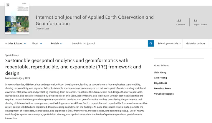 In the era of data-intensive science, the complexity and volume of geospatial data have grown exponentially. Compared to traditional data sources, non-traditional sources are more complex and structured, necessitating sophisticated methods and a series of decisions to transform raw data inputs into usable and actionable data products. This Special Issue, “Sustainable geospatial analytics and geoinformatics with repeatable, reproducible, and expandable (RRE) framework and design,” brings together a collection of seven pioneering papers that address the critical need for consistency and transparency in geospatial research. These studies explore diverse domains, including explainable machine learning, disaster risk assessment, urban ecological health, infectious disease control and scientific workflow management. Collectively, they advocate for the adoption of an RRE framework to ensure that results can be verified and reproducible across different environments and expanded with new data or methodologies. By integrating visual programming, service-oriented strategies, as well as Findable, Accessible, Interoperable, and Reusable (FAIR) principles, the featured research lowers technical barriers for non-experts while enhancing the robustness of complex models. This editorial synthesizes the contributions of these papers, highlighting how they foster a sustainable and collaborative geospatial knowledge ecosystem. This collection serves as a roadmap for the next generation of geoinformatics, where transparency and flexibility are foundational to addressing global environmental and social challenges.