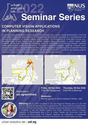 As planning research develops in response to a more complex policy context, better representation of the built environment (or physical urban system) at multiple scales becomes as important as a comprehensive and inclusive representation of decision-makers and processes. The emergence of novel data sources (e.g., OpenStreetMap, Google Street View, and satellite imagery) allows researchers to extract higher quality measures of the built environment, addressing some of the limitations in previous research regarding spatial-temporal data quality and consistency. Computer science technologies, especially computer vision, present opportunities to advance traditional data collection techniques by extracting built environment features beyond regional scales and network resolution. This seminar will discuss a few recent and ongoing projects integrating computer vision technologies into the pipeline of planning research.
