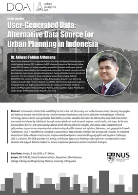 In Indonesia, limited data availability has led to the lack of accuracy and ineffectiveness urban planning. Geographic and statistics data are not reliable due to variation between institutions and unclear collection methodologies. Following technology advancement, user-generated data (UGD) presents a valuable alternative to address this issue. UGD information are created and shared by individuals through various platforms such as search engines, social media, and maps. As the data are abundant, diverse, and continuously updated which offering real-time insights, USD allows urban researchers and policymakers to gain more comprehensive understanding of public interest and opinions, behaviors, and geographical trends. Furthermore, UGD is cost-effective compared to conventional data collection methods like surveys and censuses. In Indonesia where formal data collection mechanisms may be underdeveloped or constrained by geographic and logistical challenges, UGD is a solution. The UGD provides rich, timely, and diverse data source that helps urban planners to understand current situation and support decision-makers for a more responsive governance and development strategies.