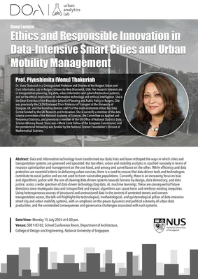 Data and information technology have transformed our daily lives and have reshaped the ways in which cities and transportation systems are governed and operated. But too often, urban and mobility analytics is couched narrowly in terms of resource optimization and management on the one hand, and privacy and surveillance on the other. While efficiency and data protection are essential criteria in delivering urban services, there is a need to ensure that data-driven tools and technologies contribute to social justice and are not used to harm vulnerable populations. Currently, there is an increasing focus on bias and algorithmic justice with the aim of steering data-driven systems towards fairness-by-design, data democracy, and data justice, across a wide spectrum of data-driven technology (big data, AI, machine learning). These are consequential future directions since inadequate data and misspecified and myopic algorithms can cause harm and reinforce existing inequities. Using heterogeneous sources of structured and unstructured data in the context of contested streets and uneven transportation access, the talk will highlight the technological, methodological, and epistemological pillars of data-intensive smart city and urban mobility systems, with an emphasis on the power dynamics and political economy of urban data production, and the unintended consequences and governance challenges associated with such systems.