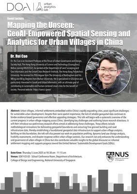 Urban villages, informal settlements embedded within China’s rapidly expanding cities, pose significant challenges for sustainable urban development. Despite their socio-spatial importance, the lack of reliable geospatial data continues to hinder evidence-based governance and effective upgrading strategies. This talk will begin with a systematic overview of the current progress in urban village mapping across China, identifying key challenges and outlining future research directions. It will then introduce our preliminary research efforts aimed at addressing these challenges. These efforts include methodological innovations for delineating geospatial boundaries and extracting fine-grained building and road infrastructure data, thereby establishing a foundational geospatial data infrastructure to support urban village analytics. Building on this foundation, the talk will also present our work on population profiling, dynamic land use change analysis, livability assessments, and disaster response within urban village contexts. Our research not only enhances the understanding and governance of urban villages in China but also contributes valuable insights to the global discourse on informal settlement mapping and supports progress toward the United Nations’ Sustainable Development Goals (SDGs).