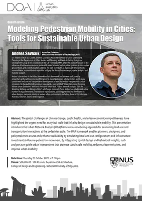 The global challenges of climate change, public health, and urban economic competitiveness have highlighted the urgent need for analytical tools that link city design to sustainable mobility. This presentation introduces the Urban Network Analysis (UNA) framework—a modeling approach for examining land-use and transportation interactions at the pedestrian scale. The UNA framework enables planners, designers, and policymakers to assess and enhance walkability by simulating how land-use configurations and infrastructure investments influence pedestrian movement. By integrating spatial design and behavioral insights, such analyses can guide urban interventions that promote sustainable mobility, reduce carbon emissions, and improve urban livability.